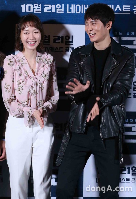 배우 이유영(왼쪽)과 주원이 19일 오후 서울 용산구 한 멀티플렉스에서 열린 영화 '특근' 언론시사회에서 포토타임을 하고 있다.