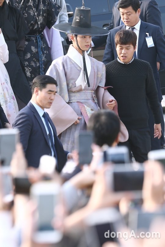배우 박보검이 19일 오후 서울 경복궁 흥례문광장에서 열린 KBS 월화드라마 '구르미 그린 달빛' 공약실천 이벤트에 참석하고 있다.
