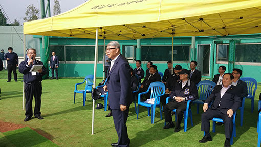 김응룡 감독 ‘야구학교’ 20일 오픈 스포츠기록통계전문업체 스포츠투아이(주)가 개설하는 ‘야구학교’의 총감독으로 위촉된 김응룡(75) 전 한화감독이 17일 성남시 탄천야구장에서 열린 제13회 성남시장기 경기도 초중고야구대회 개회식에 참여해 선수들을 격려하고 있다. ‘야구학교’는 야구입문부터 전문교육, 재활까지 체계적으로 서비스하는 야구아카데미로, 20일 오픈한다. 임호균 전 LG투수 코치, 최주현 전 휘문고 감독, 송진우 조성환 KBSN 해설위원이 코치진으로 참여한다. 재활 센터도 함께 오픈해 강흠덕 전 두산 트레이닝 코치가 센터장을 맡는다. 한편 김 총감독은 28일부터 다음달 6일까지 멕시코 몬테레이에서 열리는 제2회 세계야구선수권대회(23세 이하)의 국가대표팀 단장으로 선임됐다. 장채근 홍익대 감독이 대표팀을 지휘한다.