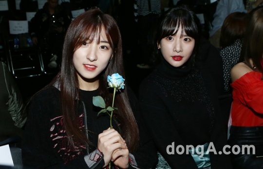 걸그룹 우주소녀의 멤버 은솔, 설아가 20일 오전 서울 동대문디자인플라자(DDP)에서 열린 '2017 S/S 헤라 서울패션위크'에 참석하고 있다.
