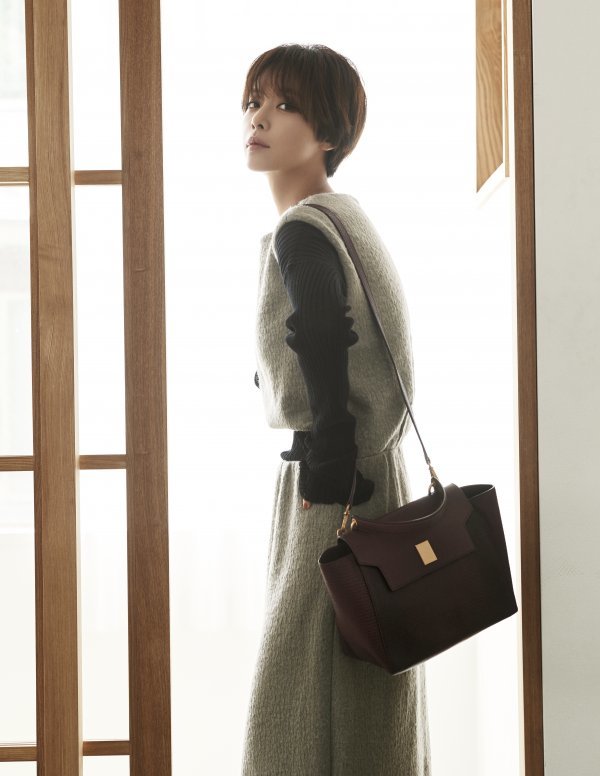 니트 원피스에는 버건디 컬러의 숄더백으로 청순한 느낌을 연출했고, 롱한 기장감의 블랙 재킷과 와이드 팬츠를 매치해 고급스러운 가죽 소재의 토트백으로 시크함을 강조했다.