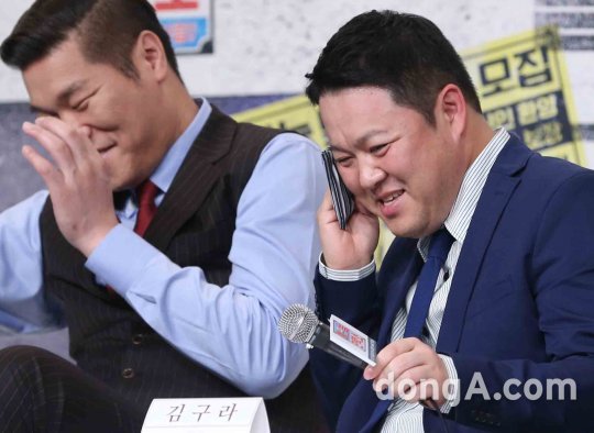 방송인 서장훈(왼쪽)과 김구라가 21일 오전 서울 영등포 타임스퀘어 아모리스홀에서 열린 tvN 예능인재발굴쇼 '예능인력소' 기자간담회에 참석하고 있다.