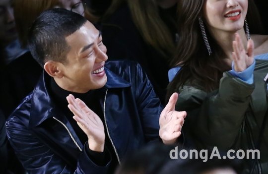 배우 유아인이 21일 오후 서울 동대문디자인플라자(DDP)에서 열린 '2017 S/S 헤라 서울패션위크'에 참석해 패션쇼를 보고 있다.