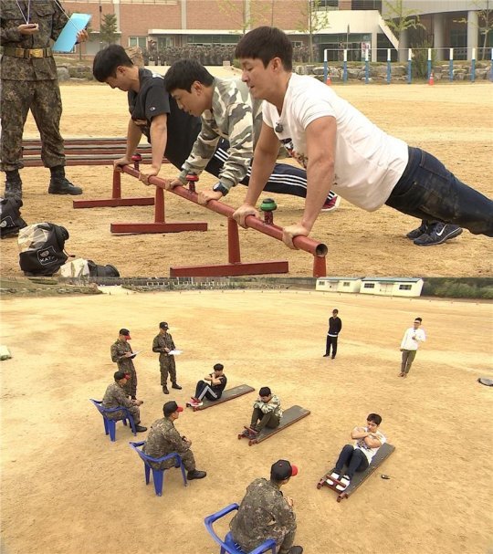 이들은 입대와 동시에 바로 체력 테스트를 실시했다. 체력테스트는 팔굽혀펴기, 윗몸일으키기, 3km 뜀걸음 순으로 실시 됐다. 연예계 최고의 몸짱들이 모인 만큼 모두의 기대가 모아졌다.
