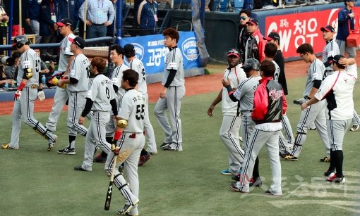 NC에 0-2로 패한 LG 선수들이 그라우드를 빠져나가고 있다. 마산 | 김민성 기자 marineboy@donga.com