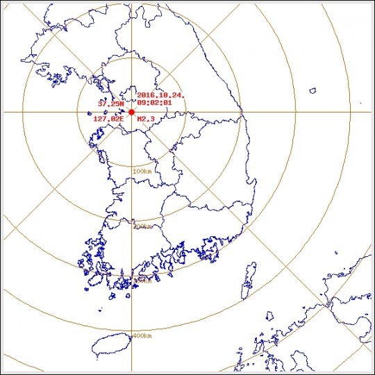 24일 오전 9시 2분경 경기도 수원에서 규모 2.3의 지진이 발생했다.