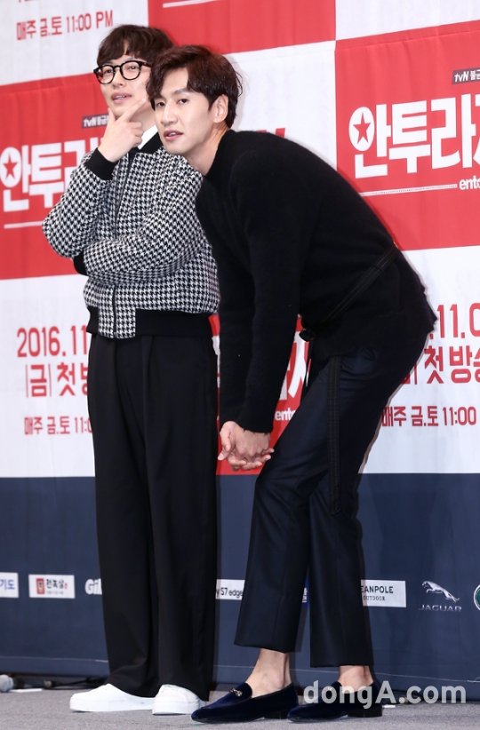배우 이동휘(왼쪽), 이광수가 25일 오후 서울 강남구 임피리얼팰리스호텔에서 열린 케이블채널 tvN 금토드라마 '안투라지' 제작발표회에 참석해 포토타임을 하고 있다.