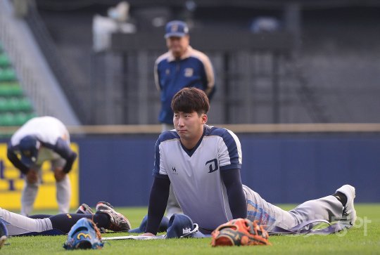 25일 잠실야구장에서 ‘2016 타이어뱅크 KBO리그 포스트시즌 플레이오프 4차전’ NC 다이노스와 LG 트윈스의 경기가 열린다. NC 나성범이 경기를 앞두고 스트레칭을 하고 있다.