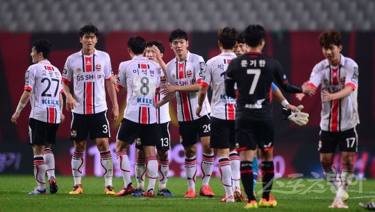 26일 서울월드컵경기장에서 열린 ‘2016 KEB 하나은행 FA컵’ 준결승 FC 서울과 부천FC 1955의 경기에서 FC 서울이 1-0 승리를 거두며 결승에 진출했다. 경기 후 FC 선수들이 기쁨을 나누고 있다.