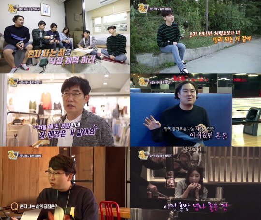 혼자 사는 한철우는 ‘정리 정돈 수업’을 듣기위해 전문가를 만나 옷정리 노하우를 배웠고, 정범균은 ‘혼자 사는 삶’을 취재하기 위해 카페를 찾았다. 또한 김주희는 ‘고깃집 가서 혼자 밥 먹기’에 도전했다. 김주희는 주위의 눈치를 보며 조심스럽게 식사를 시작했지만 ‘먹방여신’답게 상추까지 추가하는 모습을 보여 웃음을 자아냈다.