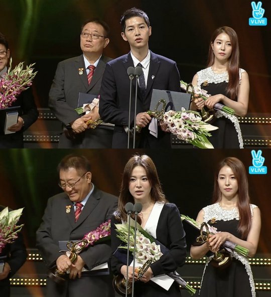송혜교는 "감사하다. 이 자리에 서니 '태양의 후예'에서 고생한 스태프들이 생각난다. 이 상을 받을 수 있는 건 국내외 시청자, 팬들 덕분이다. 한국 드라마 사랑하실 수 있도록 열심히 연기하겠다", 송중기는 "영광이다. 내 친구 아시아의 프린스 이광수와 함께 큰 상을 받아서 기쁘다. 큰 무대에 오를 수 있는 건 뒤에서 힘써주는 관계자들 덕분이다. 감사하다"고 고마운 마음을 전했다.