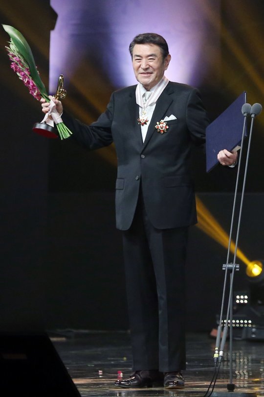 배우 남궁원이 27일 오후 서울 중구 국립극장 해오름극장에서 열린 '2016 대한민국 대중문화예술상' 시상식에서 은관 문화훈장을 받은 뒤 소감을 말하고 있다.