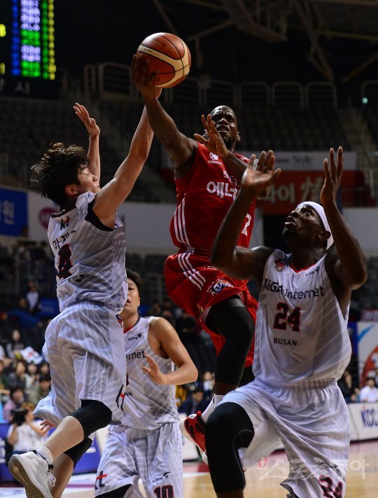 27일 고양체육관에서 ‘2016-2017 KCC 프로농구’ 부산 kt와 고양 오리온의 경기가 열렸다. 고양 오리온 바셋이 부산 kt 이재도와 고든의 수비를 피해 레이업 슛을 하고 있다.