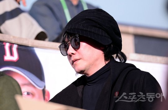 30일 서울 잠실야구장에서 ‘2016 타이어뱅크 KBO 리그’ 한국시리즈 2차전 NC다이노스와 두산베어스 경기가 열렸다. 가수 김장훈이 야구장을 찾아 경기를 관전하고 있다. 잠실 | 김종원기자 won@donga.com