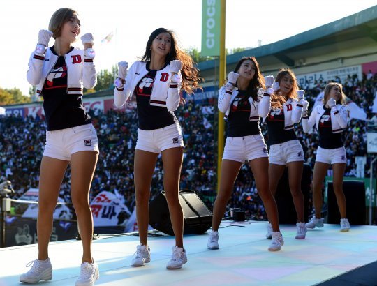 30일 서울 잠실야구장에서 ‘2016 타이어뱅크 KBO리그’ 두산 베어스와 NC 다이노스의 한국시리즈 2차전 경기가 열렸다. 두산 치어리더가 화려한 공연을 선보이고 있다. 잠실 | 김민성 기자 marineboy@donga.com