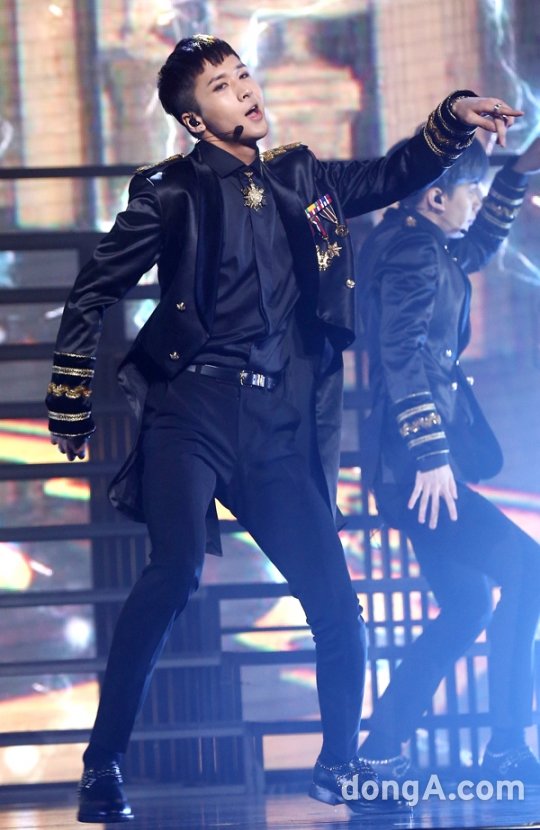 그룹 빅스가 31일 오후 서울 광진구 예스24 라이브홀에서 열린 세번째 미니앨범 '크라토스' 쇼케이스 무대에서 공연을 하고 있다.