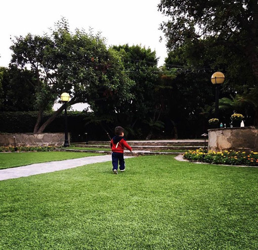 잔디 위를 뒤뚱거리며 뛰어가는 뒷모습이 귀엽다. 뛰어가다 행여나 다칠까, 엄마의 마음이 엿보인다. 이민정이 아들의 뒷모습을 공개했다. 예쁜 모습을 사진으로 남겨주고 싶은 엄마지만 “넌 너무 달리기가 빠르구나” 아쉬움을 드러내본다. 남색 바지에 후드 티셔츠, 그 위에 입은 빨간색 카디건이 사랑스럽다. 얼굴을 보지 않아도, 반듯하게 빗은 뒷머리가 아빠 이병헌을 닮았다.