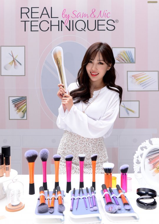 3일 서울 논현동 모스스튜디오에서 열린 메이크업 툴 전문 브랜드 ‘리얼테크닉’ 런칭 기념 포토월 행사에서 메이크업 아티스트 이사배가 포즈를 취하고 있다. 리얼테크닉은 최근 대표 제품 ‘미라클 스펀지’ 외에 ‘메이크업 브러쉬’(파운데이션, 파우더, 블러쉬, 아이새도우 등) 제품군을 전국 700여 개 올리브영 매장에 확대 입점한다.