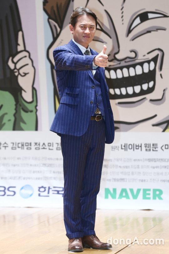 배우 김병옥이 3일 오후 경기도 성남시 네이버에서 열린 웹드라마 '마음의 소리' 제작발표회에 참석해 포토타임을 하고 있다.