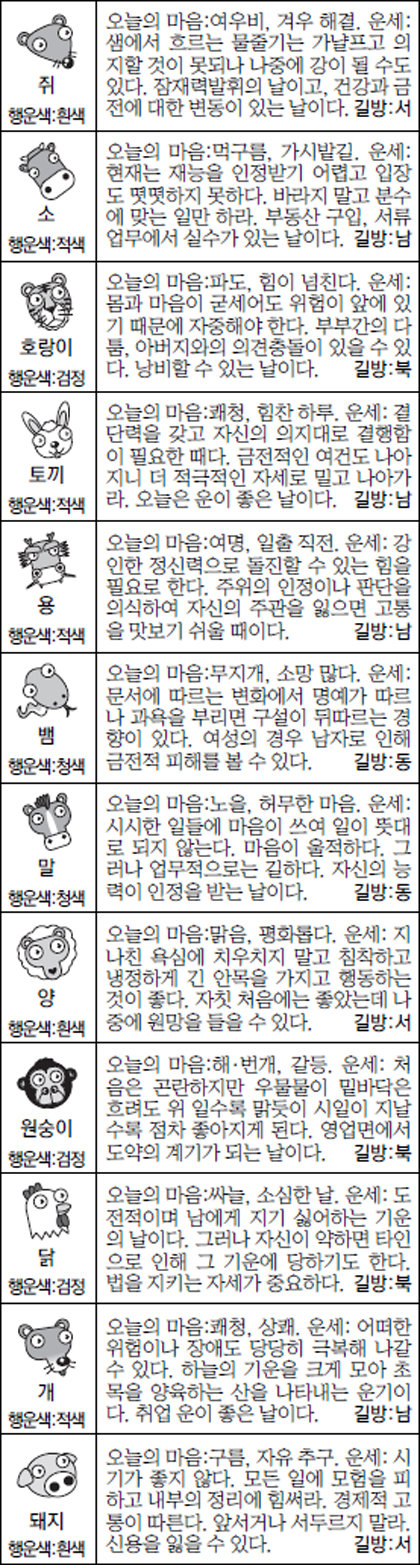 행운의 띠: 토끼,양,돼지(쥐,용,원숭이)