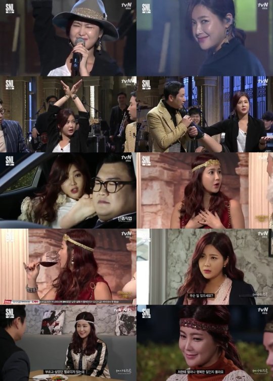 솔비는 5일 방송된 tvN ‘SNL 코리아 시즌8’ 호스트로 전격 출연했다. 최근 ‘무한도전’, ‘라디오 스타’, ‘진짜 사나이’ 등 각종 예능 프로그램에 출연해 특유의 엉뚱 입담과 센스 넘치는 예능감을 선보이며 맹활약하고 있는 솔비가 SNL 호스트 자리까지 꿰차며 대세임을 입증하는 행보를 이어나갔다.