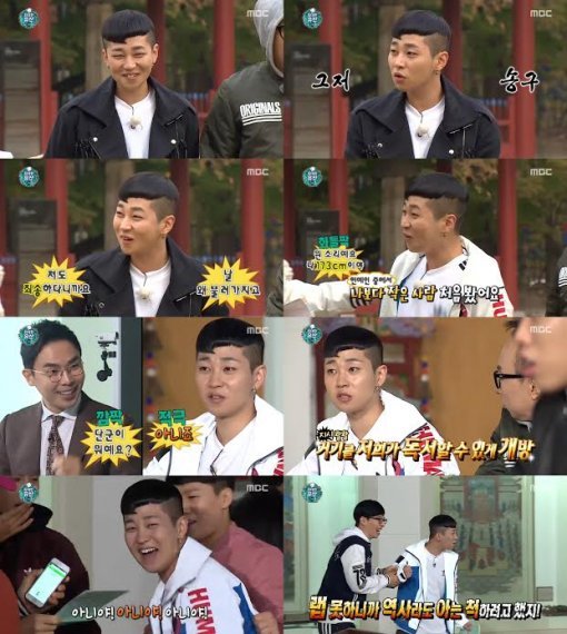 12일 방송된 MBC '무한도전'에서는 '역사X힙합 프로젝트-위대한 유산'의 첫 이야기가 공개됐다. 멤버들과 래퍼들이 짝을 이뤄 역사를 주제로 랩을 만드는 이번 프로젝트에는 도끼, 개코, 지코, 비와이, 송민호와 함께 딘딘이 출연했다.