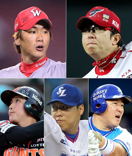 SK 김광현-KIA 양현종-삼성 최형우-차우찬-롯데 황재균(왼쪽 상단부터 시계방향으로). 사진|스포츠동아DB·스포츠코리아