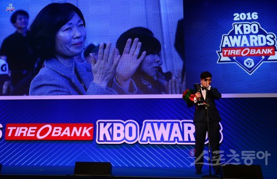 14일 서울 양재동 더케이호텔에서 ‘2016 타이어뱅크 KBO리그 시상식’이 열렸다. 신인상을 수상한 넥센 신재영이 수상소감도중 눈시울을 붉히고 있다.