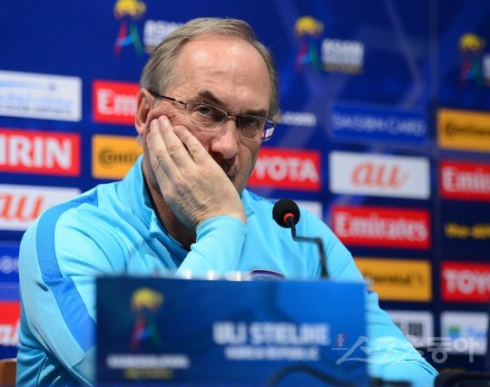 대한민국 축구대표팀이 오는 15일 우즈베키스탄과의 ‘2016 러시아월드컵 아시아최종예선’을 앞두고 14일 파주 축구국가대표 트레이닝센터(NFC)에서 훈련을 가졌다. 훈련을 앞두고 열린 공식 기자회견에서 슈틸리케 감독이 취재진의 질문을 듣고 있다.