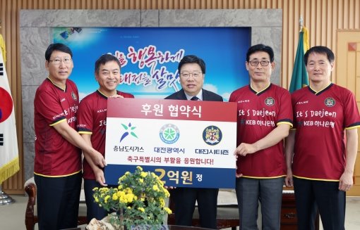 협약식에 참석한 충남도시가스 황인규 대표이사는 “대전은 단순히 시민구단의 가치를 넘어 지역민들의 자부심이다. 내년 시즌, 좋은 성적으로 대전시민들의 활력소가 돼 주길 바라며, 충남도시가스도 뒤에서 응원하겠다”라고 소감을 밝혔다.