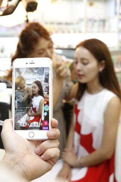 이제 뷰티업계도 브랜드의 명성이나 빅모델보다는 입소문과 동영상에 의해 소비자들이 움직인다. 라비오트의 메이크업 쇼에 초청을 받아 모바일로 생중계 하는 중국의 왕홍 위샤오샤오.