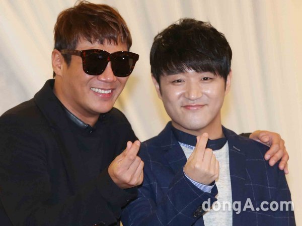 바이브의 윤민수(왼쪽)와 류재현이 15일 오전 서울 강남구 프리마호텔에서 정규 7집 앨범 'Part2('Repeat & Slur(리피트 앤 슬러)' 발매 기자간담회에 참석해 포토타임을 하고 있다.