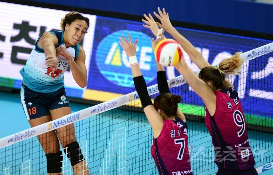 16일 인천 계양체육관에서 ‘2016-2017 NH농협 V리그’ 인천 흥국생명과 서울 GS칼텍스의 경기가 열렸다. GS칼텍스 알렉사가 흥국생명 블로커를 피해 스파이크를 날리고 있다.
