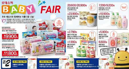 롯데슈퍼는 17일부터 전점과 온라인 롯데e슈퍼에서 제1회 베이비페어를 연다. 유한킴벌리, 보령, 존슨앤존슨 등 10개 우수 제조사와 공동 기획해 최저가 수준에 상품을 제공한다. 유한킴벌리 매직팬티 기저귀 10종과 마미포코 팬티 기저귀 4종을 각각 최저가 1만1800원, 1만1900원에 판매한다. 판매 수익금 일부와 유아용품을 미혼모지원센터에 기부할 예정이다.