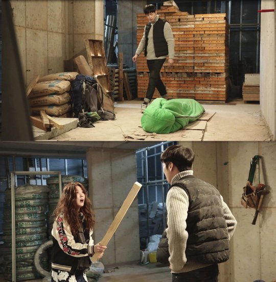 공개된 사진에는 현장소장 이현우가 자재들이 적재돼 있는 공사장에서 마치 배추벌레를 연상시키듯 침낭 속에서 꼬물거리고 있는 누군가를 심각한 듯 바라보고 있는 모습이 포착돼 있다. 이어진 사진에는 한껏 이현우를 향해 곧이라도 각목을 휘두를 듯 포즈를 잡고 있는 한정은(이수경)의 경계심 가득한 표정과 행동이 담겨 있다.