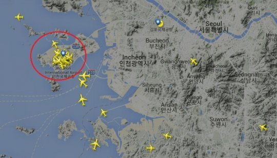 이로 인해 인천공항에 다다른 항공기가 공항 근처에서 맴돌았다.