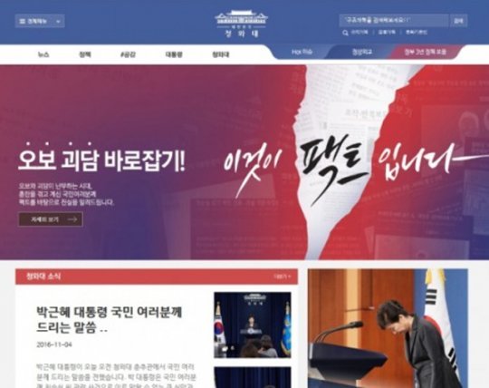 청와대 공식홈페이지 ‘오보·괴담 바로잡기’ 메인 등장… 최순실 국정농단 파문에 해명 나서