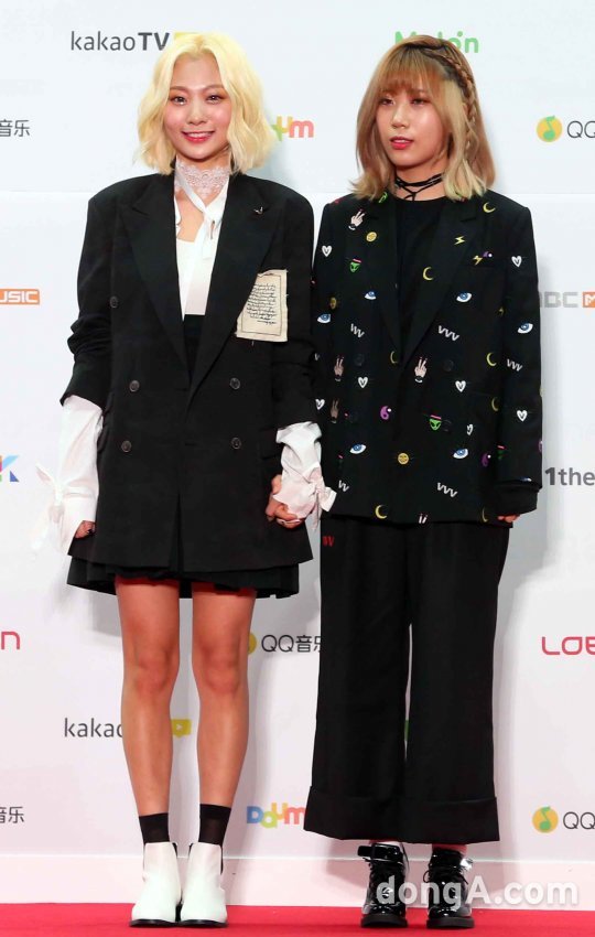 여성 듀오 볼빨간사춘기(안지영, 우지윤)가 19일 오후 서울 구로구 고척 스카이돔에서 열린 2016 멜론뮤직어워드 행사에 참석하고 있다.