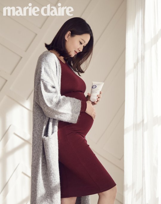 함께 진행된 인터뷰에선 임신 후 어떻게 관리를 하고 있는지 묻자, 임신 후 여성의 몸은 드라마틱하게 달라지기 때문에 틈틈히 스트레칭을 하거나 꾸준히 마사지를 해, 거칠어지고 땅기는 피부를 촉촉하고 탄력있게 가꾼다고 본인 만의 비법을 공개하였다.