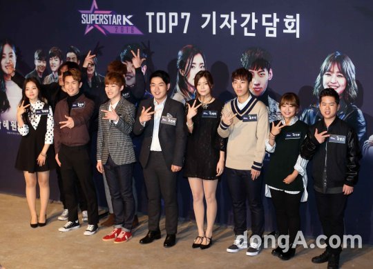 22일 오전 서울 강남구 청담 씨네시티 엠큐브에서 열린 방송 슈퍼스타 2016 TOP7 기자간담회에 출연진이 포토타임을 하고 있다.