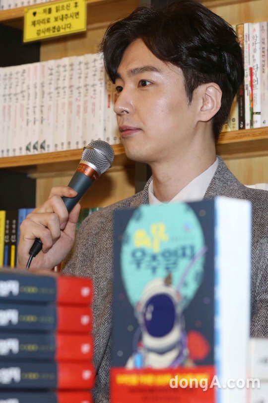 신동욱이 22일 오후 서울 마포구 다산북카페에서 소설가 데뷔 기자간담회에서 포토타임을 하고 있다.