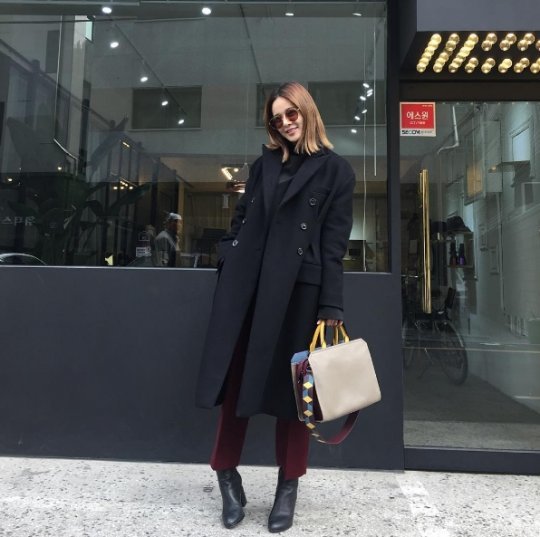 패션에 있어서도 스타일리시한 감각을 놓치지 않았다. 블랙 오버사이즈 코트와 버건디 팬츠에 별다른 액세서리 없이 유니크한 패턴 스트랩이 돋보이는 베이지 컬러의 토트백으로 포인트를 줘 스타일링에 생기를 불어넣었다.