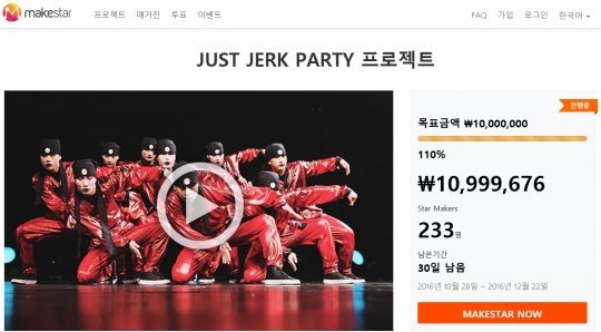 세계댄스대회 1위팀 저스트절크의 공연 프로젝트가 글로벌 크라우드펀딩 방식으로 목표금액 100%를 달성했다.