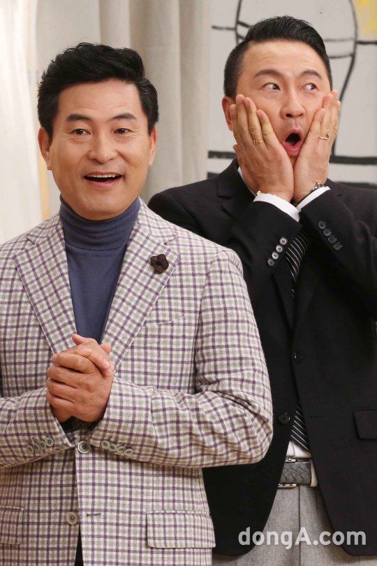 배우 이한위(왼쪽)와 주영훈이 23일 오전 서울 마포구 상암동 DDMC 동아디지털미디어센터에서 열린 채널A 아빠 본색 기자간담회에 참석하고 있다.