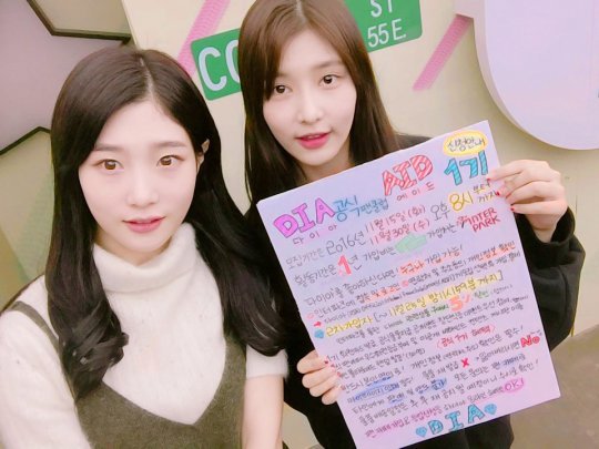 공개된 사진 속 다이아의 멤버 정채연과 제니는 ‘DIA(다이아) 공식 팬클럽 AID(에이드) 1기 신청 안내문을 들고 다정한 모습으로 카메라를 응시하고 있다.