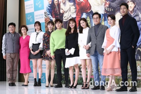 배우 임채무(왼쪽부터), 이종남, 이성혜, 배슬기, 김동준, 이영은, 박하나, 박찬환, 양미경, 최정원이 23일 오후 서울 영등포구 영등포타임스퀘어에서 열린 KBS 일일드라마 '빛나라 은수' 제작발표회에 참석해 포토타임을 하고 있다.