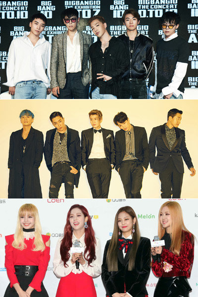 그룹 빅뱅-젝스키스-걸그룹 블랙핑크 (맨위부터 아래로). 사진제공|YG엔터테인먼트·동아닷컴DB
