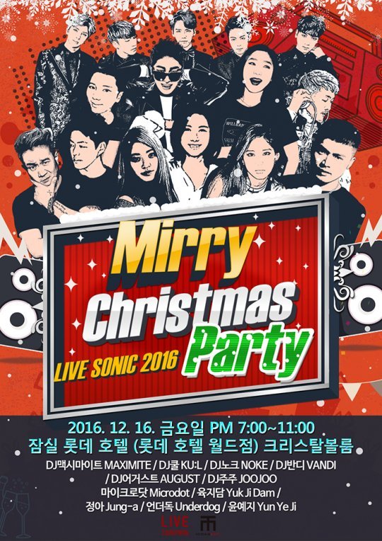 국내 최고 래퍼들과 DJ들이 함께하는 크리스마스 공연 ‘LIVE SONIC 2016 CHRISTMAS PARTY (라이브 소닉 2016 미리 크리스마스 파티)’가 개최된다.