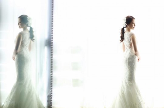 웨딩 화보 속 노희지는 몸매 라인이 드러나는 과감한 드레스 자태로 미모를 자랑했다. 또 달달한 눈빛을 주고 받는 커플 사진도 눈길을 끈다.
