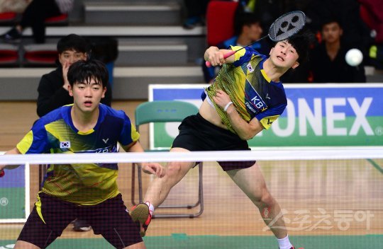 2016 요넥스 코리아주니어오픈 국제배드민턴선수권대회가 21~27일 경남 밀양배드민턴경기장에서 열린다. 25일 U-19 남자 복식 8강전에서 한국 전상필(오른쪽)-이학범 조가 스매싱 공격을 하고 있다.